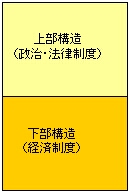 「社会は二階建ての構造になっている。一階部分の下部構造は経済制度・経済的諸関係であり、二階部分の上部構造は、政治や法律制度、イデオロギーである。そして、上部構造は常に下部構造によって規定される」というものです。下部構造である経済構造が変化することで、上部構造である人間生活の精神的部分やイデオロギーも変化していくとする理論です。