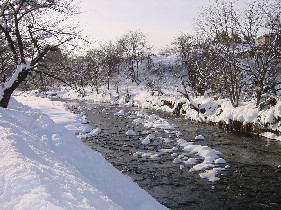 側溝は冷厳な水で満たされ、川岸には雪がうずたかく積まれ続けている。この雪が川を浄化し、鱒たちが棲む河川に新鮮な水と空気を供給していくのだろう。これは、雪だけに限らず、私たちに大きな被害を与える台風も同じ効 果をもっているのだと思う。