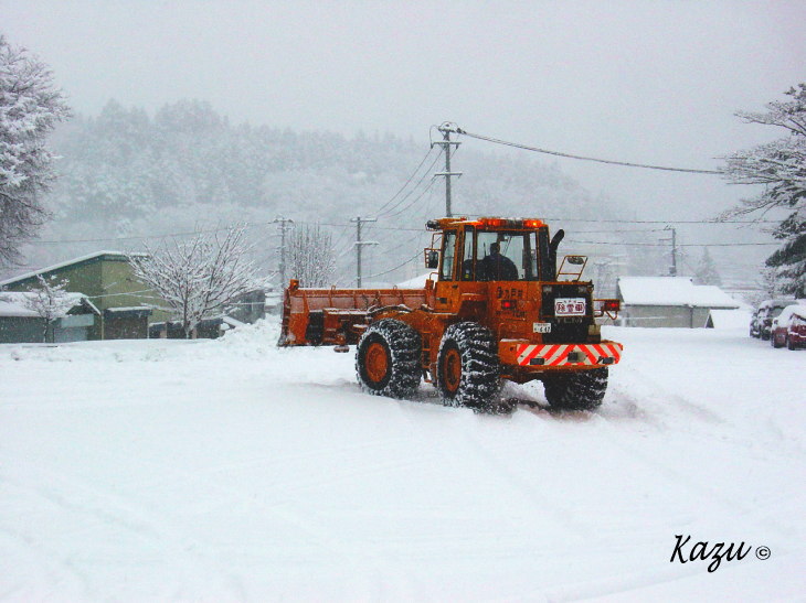 除雪車も急遽出動です。昨年より、その回数は増えることでしょう。 |