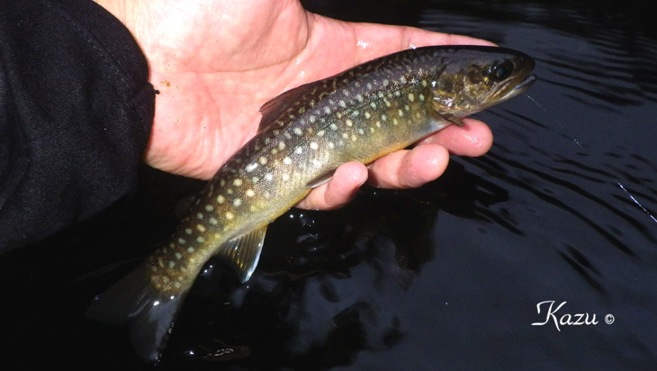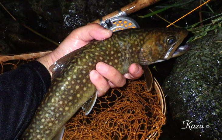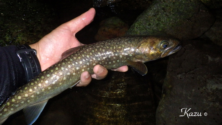 19時過ぎ、尺岩魚が出てくれました。