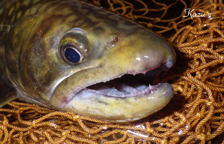 四苦八苦しながらランディングしてみると尺を優に超えるデカデカ岩魚君でした。