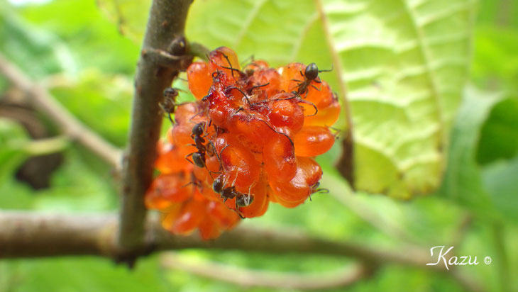 岸辺には真っ赤に熟した桑の実が沢山観られました。蟻は大忙しです。