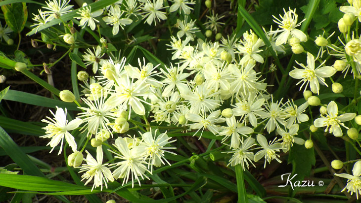 猛暑の中、岸辺に逞しく群生していました。