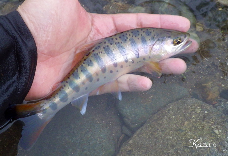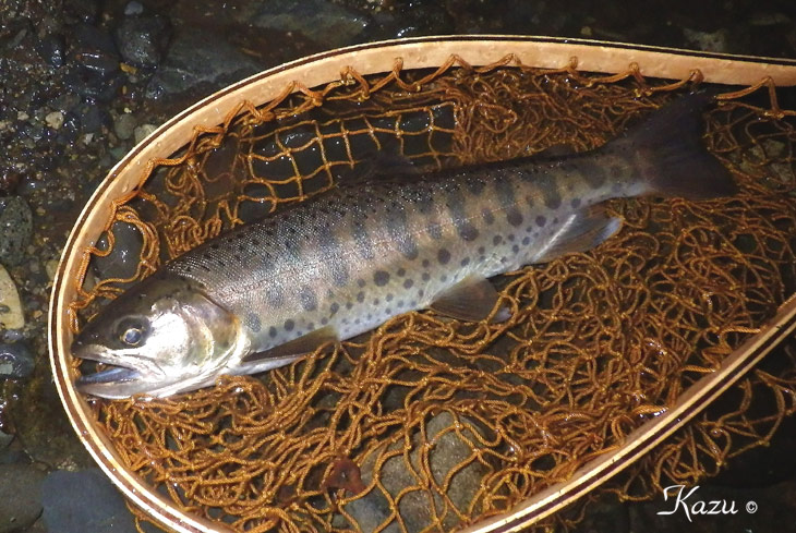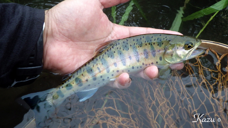 薄濁りの流から美しい山女魚が出てくれました。里川の宝石です。