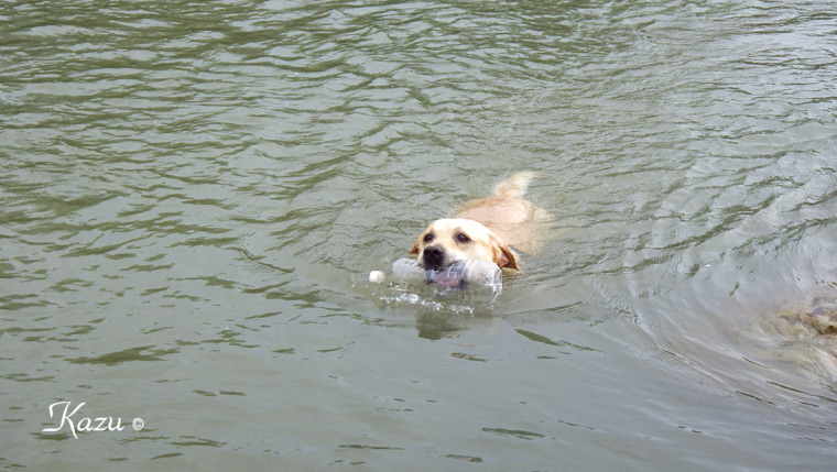 三男Jamと増水気味の胆沢川へ