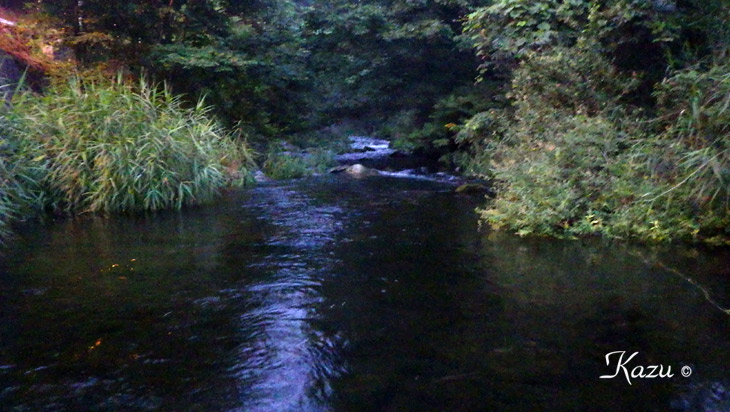 18:30頃から蛍が飛翔する里川へ入渓しました。