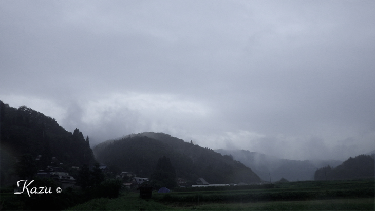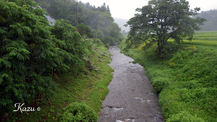 前線が停滞し、風景は墨絵の世界 車で20分、近所の渓へ
