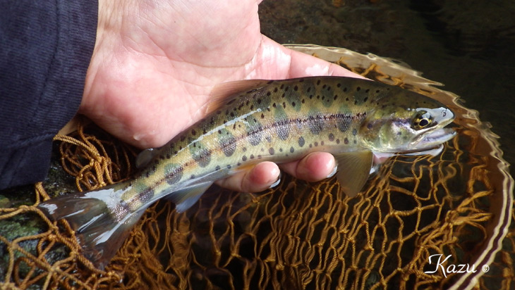キャッチ&リリースの大切さを実感しました。しかも一ヶ月で3cm近く成長していました。豊かな涵養力と自然環境、鱒を養うに十分な保水と虫のハッチが裏付けとなっている故でしょう。