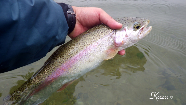 入渓者が多く、シビアな状態の中、#4のウーリーバガーに出てくれた一匹です。貴重です。