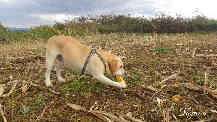 コーンの残りに目を付けた息子とです。
