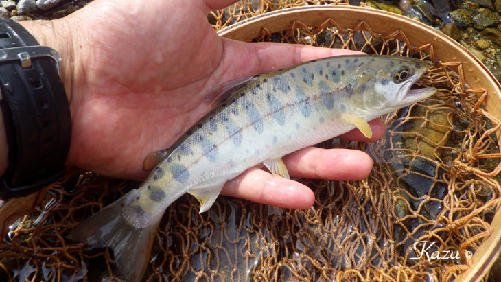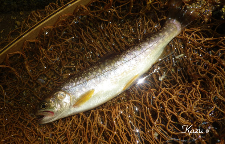 山女魚も反応してた。放流の混淆か?