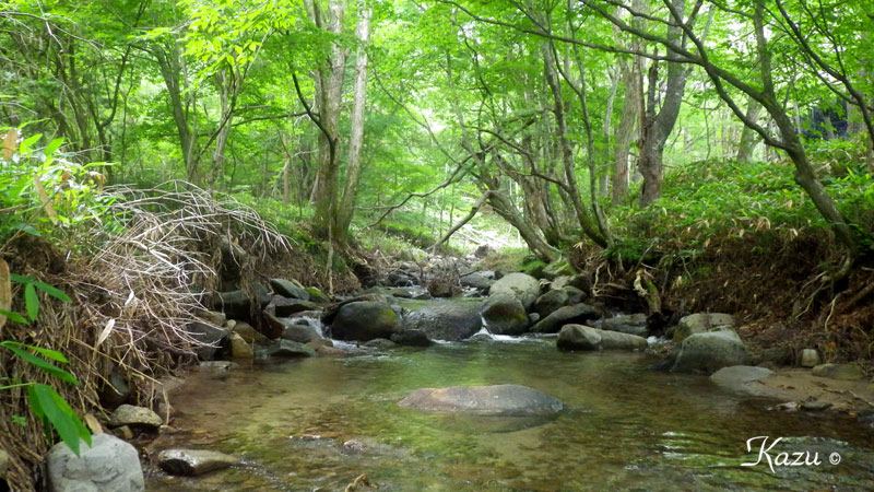 岩手県北部沿岸河川の深い森の中での釣り。豊かな流れが続いていました。