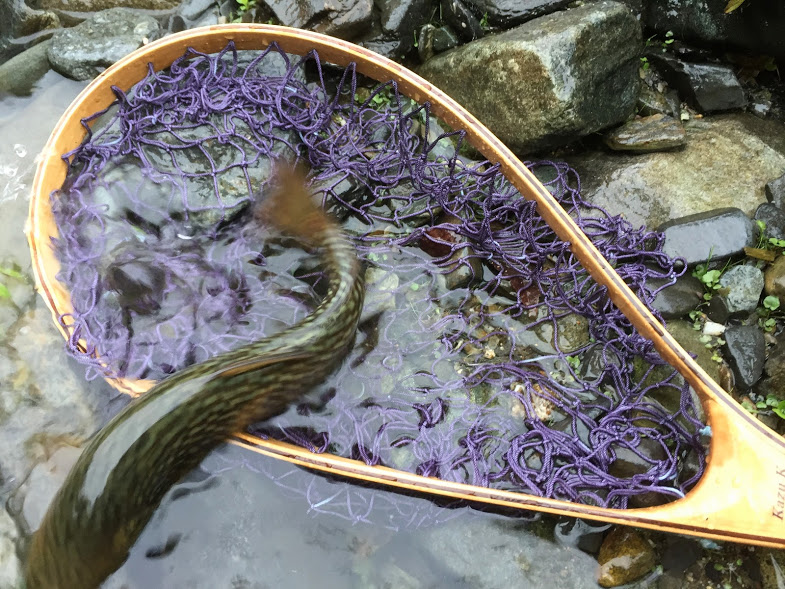 二本目のランディングネットが完成。そこで、お気に入りの渓で入魂式。 |