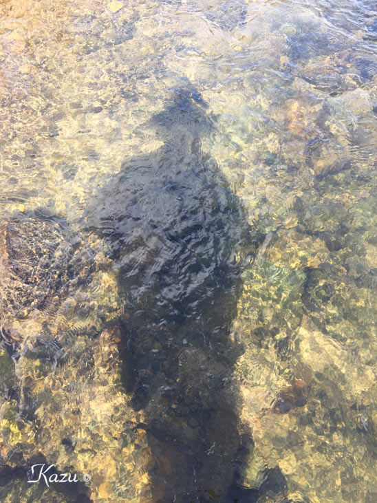 ライズが見当たらず、ニンフで探りながらストーキング。