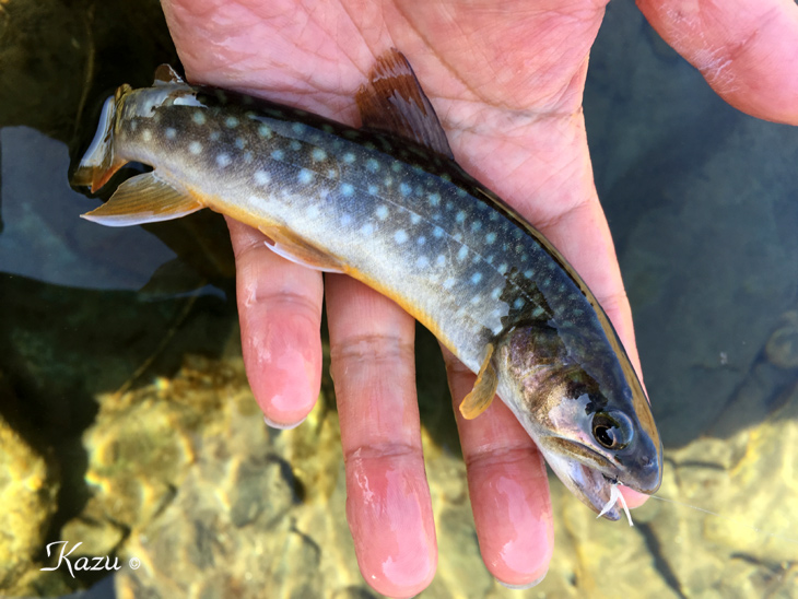 12時頃から渋々のライズが発生。イマージャーの捕食を何とか捉えて、美麗山女魚ちゃんと岩魚君に出会えました。