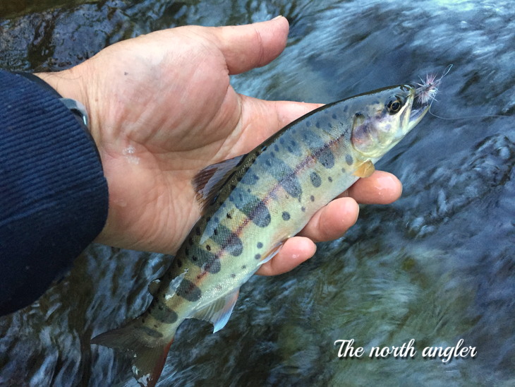 なんと、入渓してすぐに尺岩魚が出てくれました。