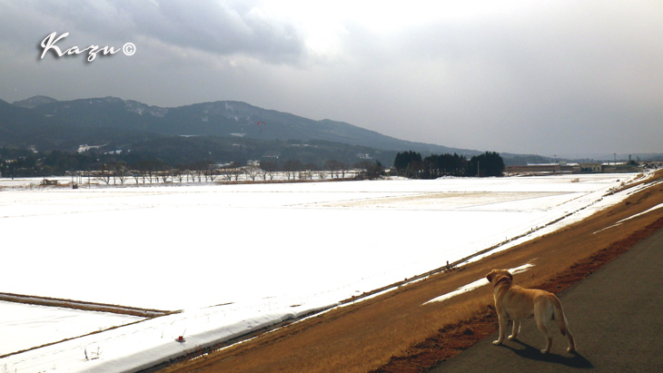 扇状地の主、胆沢川の夕刻を三男(愛犬)と散策。