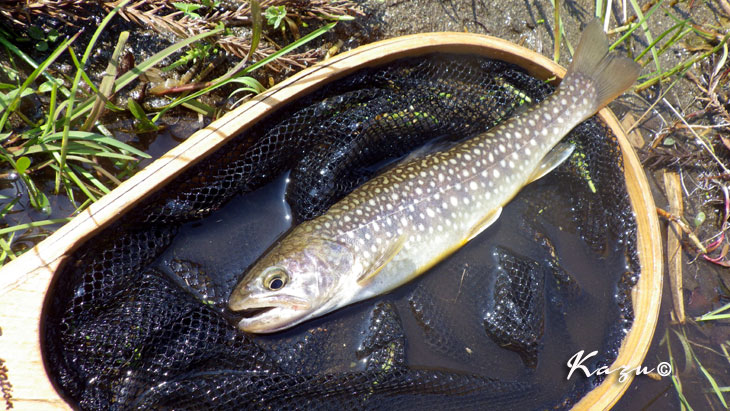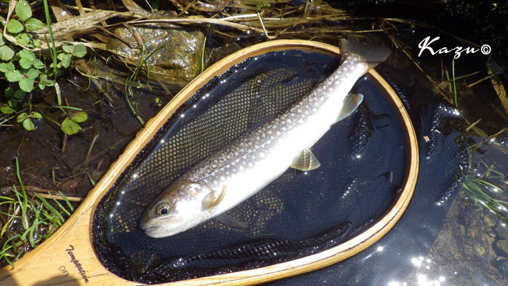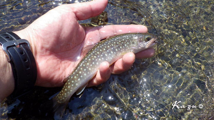 12時頃入渓して#15CDCダン一本で釣りあがると、こんな感じの岩魚が渋く反応してくれました。痩せてはいますが、中々のファイトでした。
