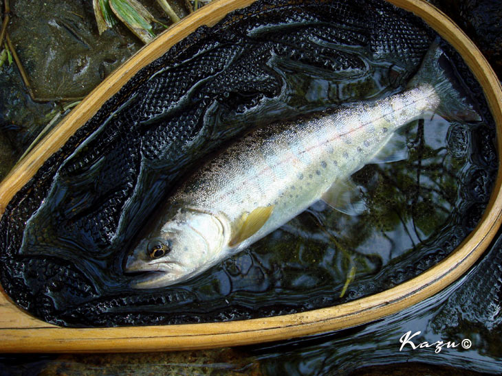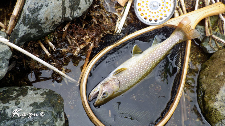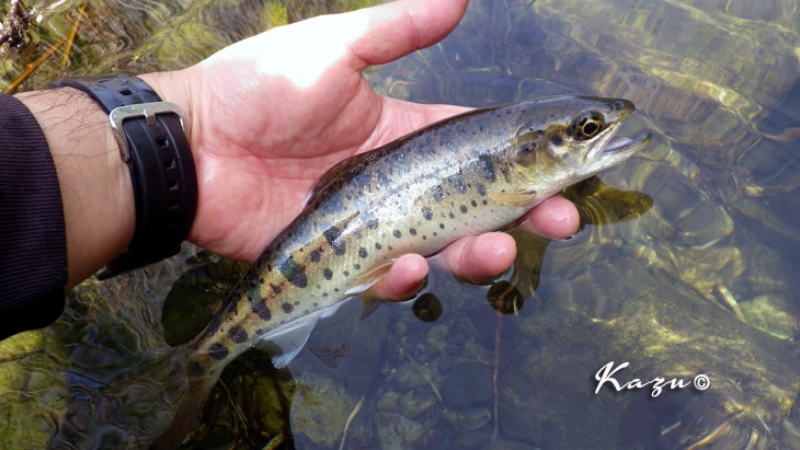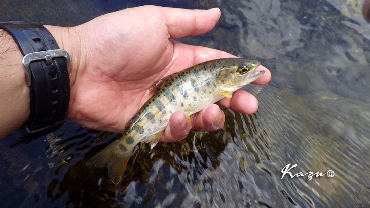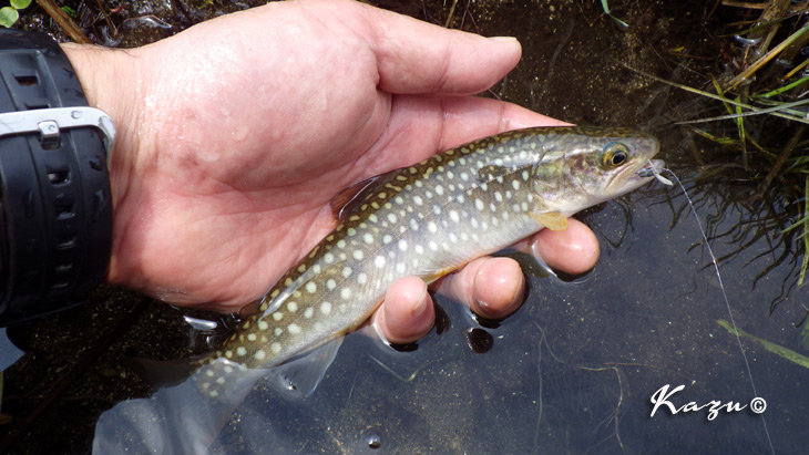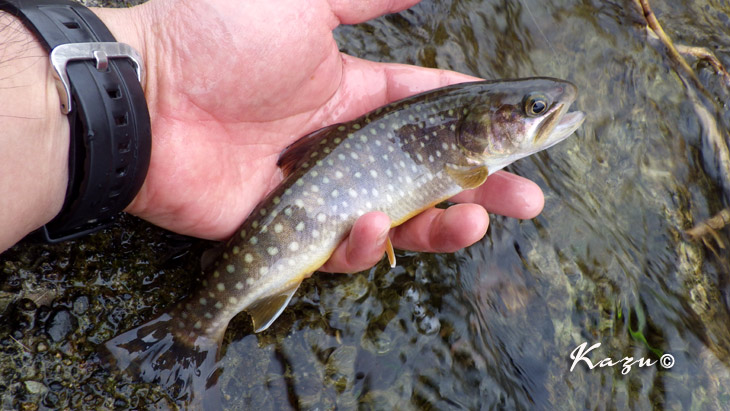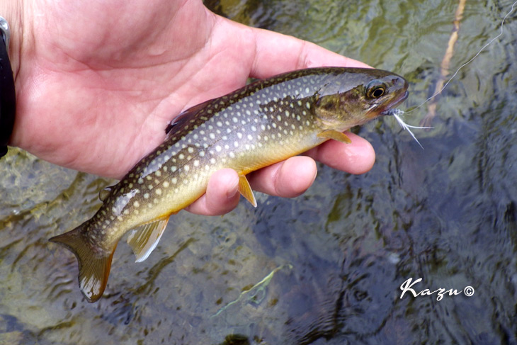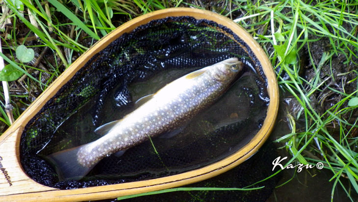 不安定な天気を反映して、岩魚も戸惑っているようでした。3度目でフッキング。