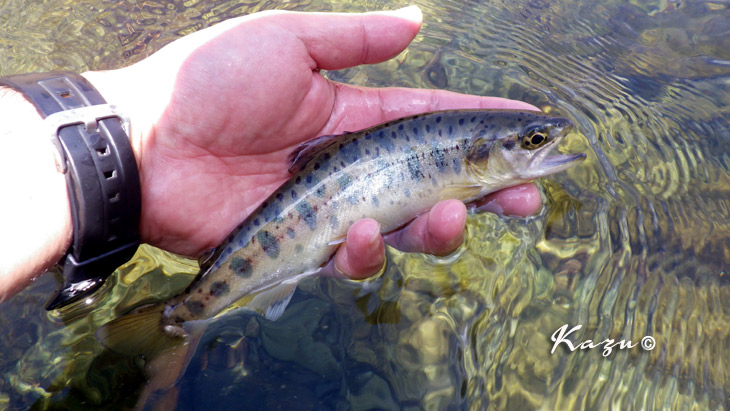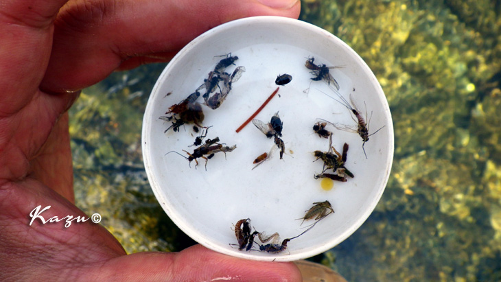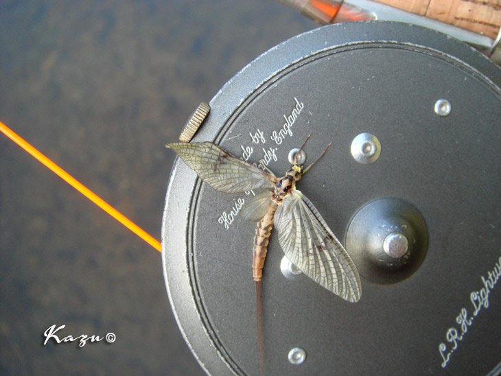 こんな感じが水面を漂っていたのですが、水が少なく、カンカン照りでしたので、鱒たちの警戒心はかなり高まっていたようです。