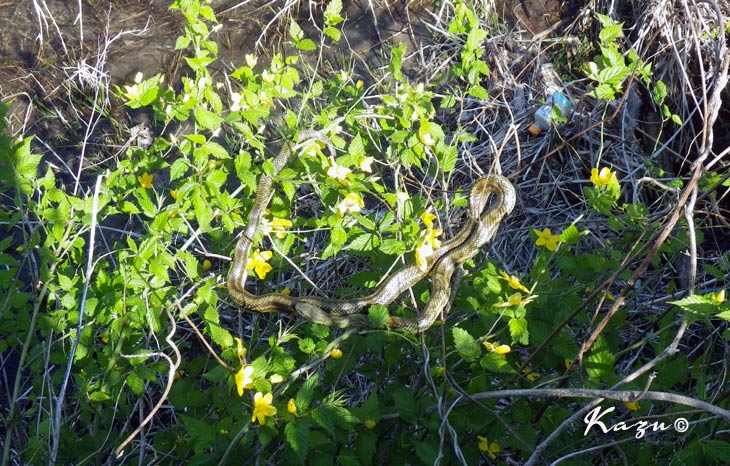 川原の枝で日向ぼっこしていました。