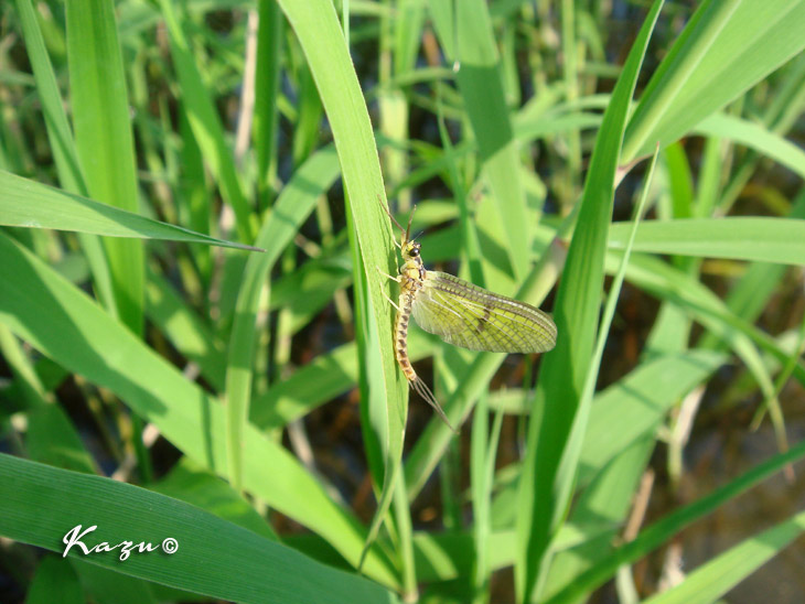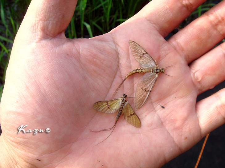 水量は少なめ。モンカゲロウがあちらこちらでハッチしていました。