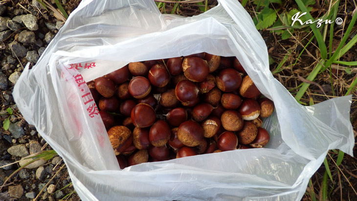 雑木林の中で山栗を見つけました。ほとんど手付かずだったので、こんなに採れました。