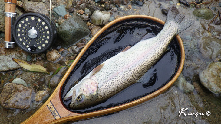 それでもなんとか堰堤の落ち込みで、ビーズヘッドを沈めて一匹。