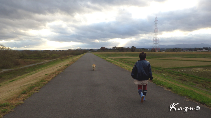 秋の一日、三男を連れて近所の川原を散歩