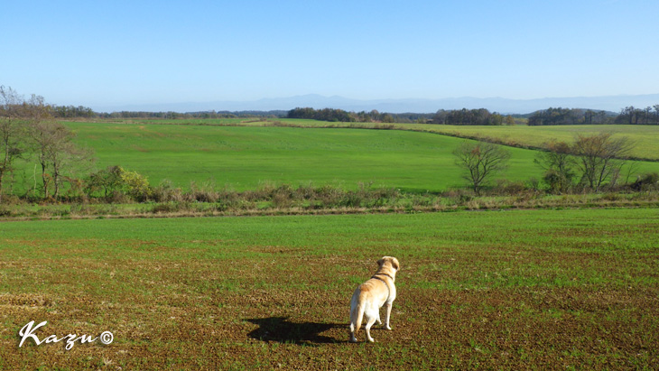 秋晴れの早朝、三男を連れて車で20分。西の草原へ。