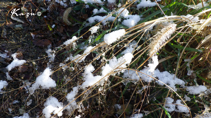 昨夜から急激に冷え込み雪がちらほらと舞ってきました。 今朝外を見てみると、所々が白くなっていました。初雪です。