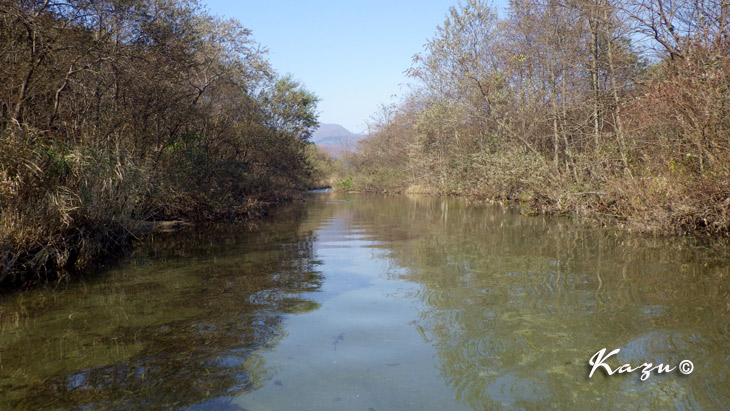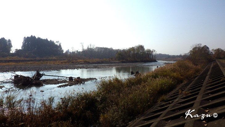 インディアンサマーな日曜日。三男を連れて近所の胆沢川へ散歩に行きました。ライズが出そうな雰囲気・・・。