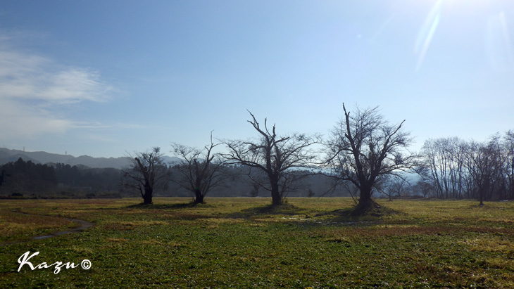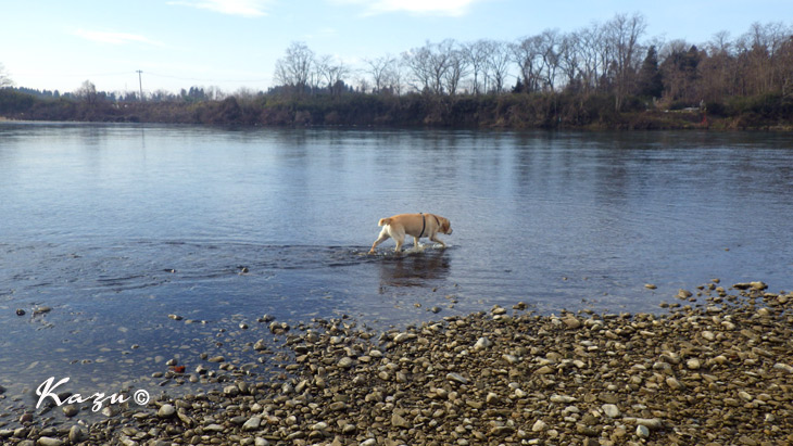 寒気が一時的に緩み、小春日和な一日。三男と北上川の散策へ。