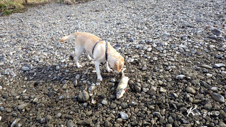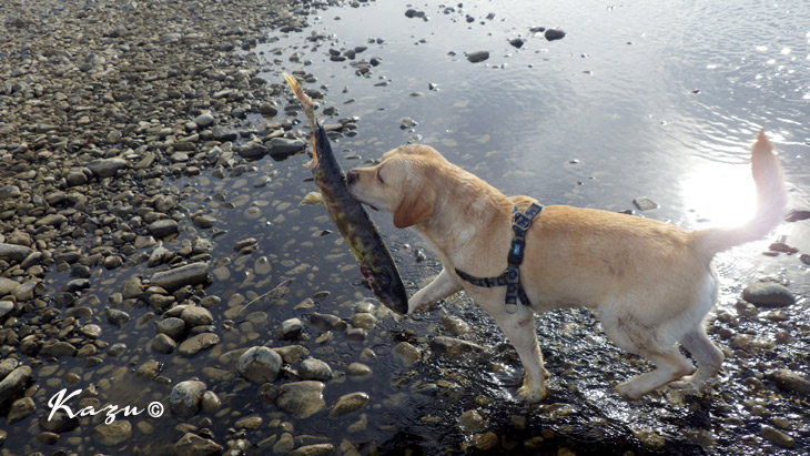 しばらくしたら、なんと!獲物を銜えて戻ってきました。